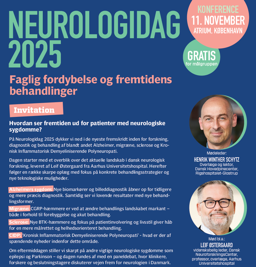 Yngre neurologer, neurokirurger og neurofysiologer er inkluderet i målgruppen (dvs. gratis deltagelse) til “Neurologidag 2025” afholdt af Dagens Medicin med mødeleder Henrik Schytz.